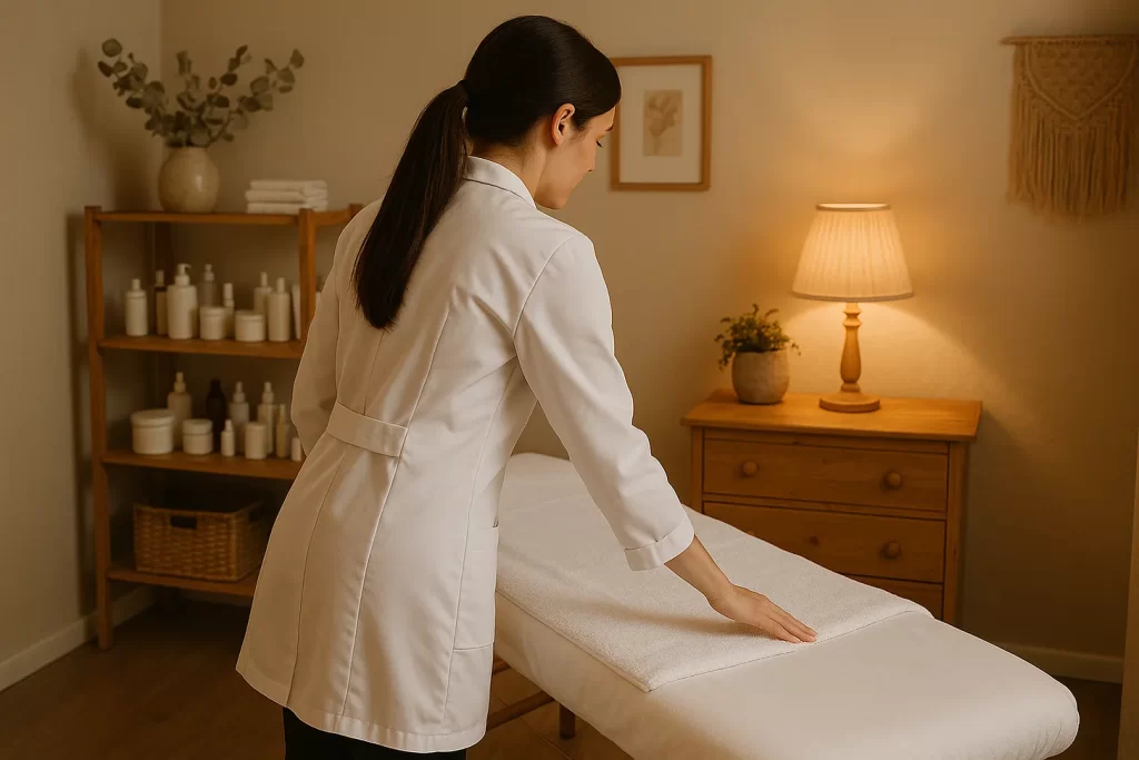 Muitas profissionais também começam atendendo em casa. Isso tira o peso do aluguel, o que é ótimo no começo. Mas é importante garantir que o ambiente seja adequado e lembrar: é uma fase. Não é o lugar que define sua capacidade, mas a forma como você conduz seu trabalho.