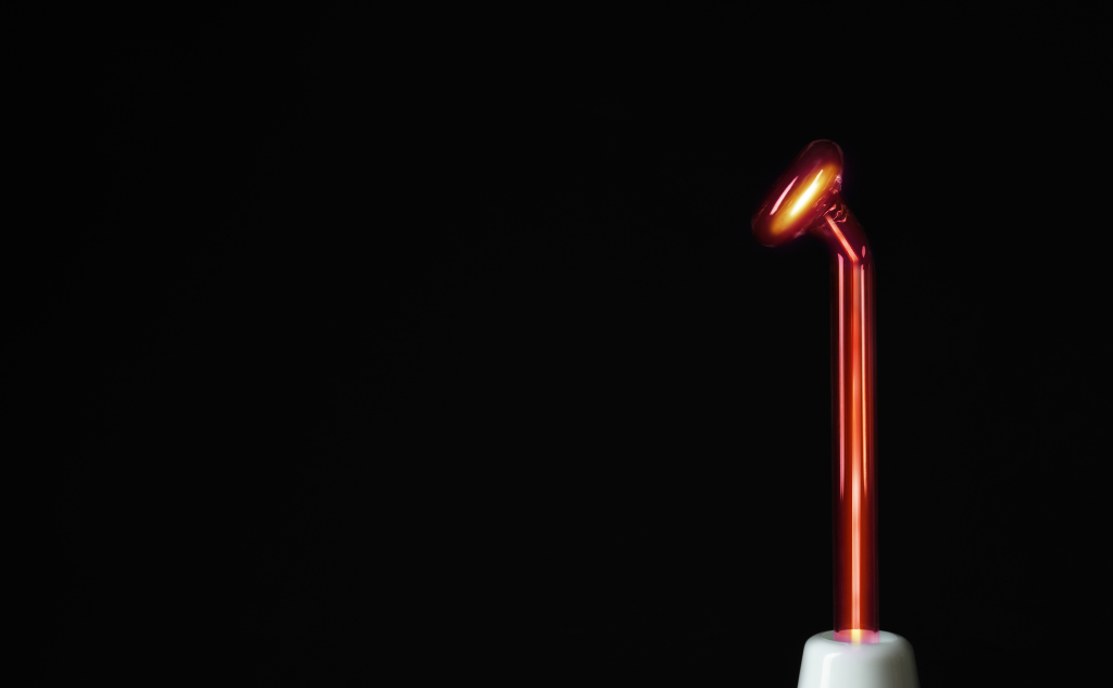 - Com o eletrodo completamente seco, encaixe-o no equipamento e ligue a alta frequência realizando pequenas batidinhas no eletrodo. Essas batidinhas vão gerar o faíscamento que são responsáveis pela liberação do ozônio, que atua como complemento no processo de desinfecção.